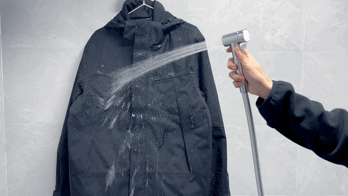 同样我们也做一个小测试:采用“花洒冲击”测试,将花洒调至最大水压,对准肩袖接缝、拉链等易渗水部位,持续冲刷。